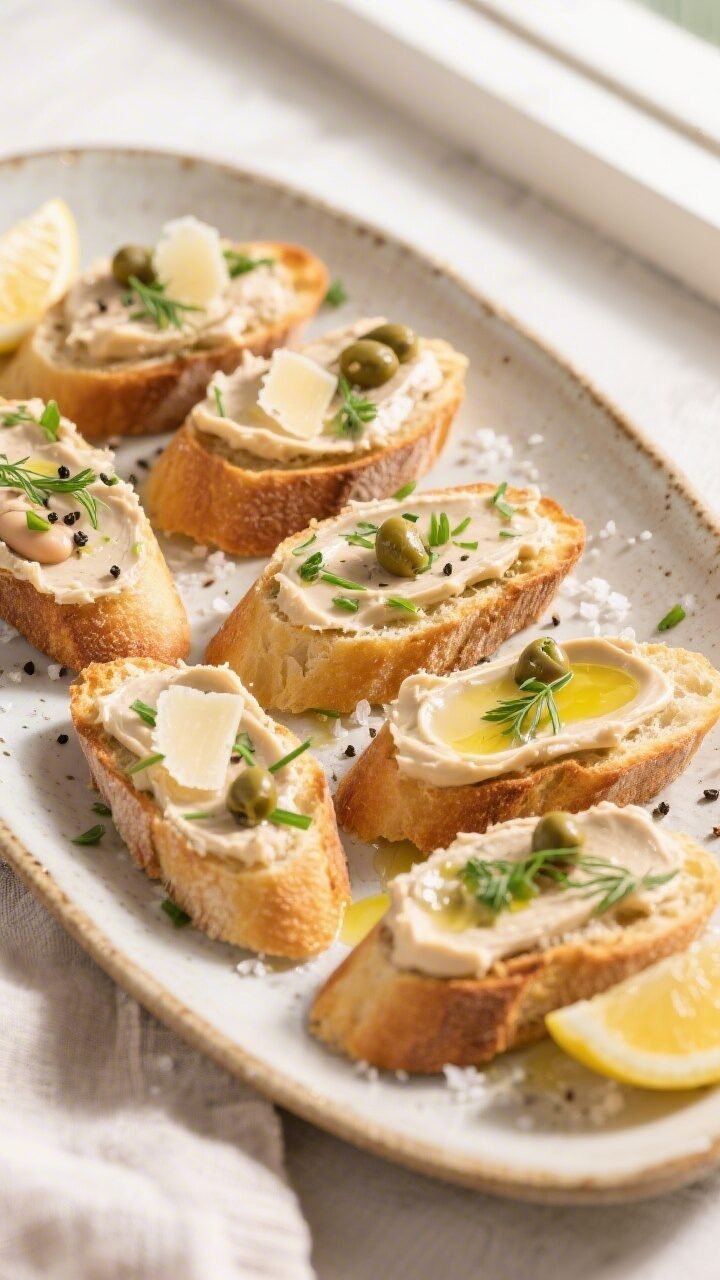 Toasted bread: Keep crostini in an airtight bag or container at room temperature for 1–2 days. Re-crisp in a 350°F (175°C) oven for 3–5 minutes if needed.