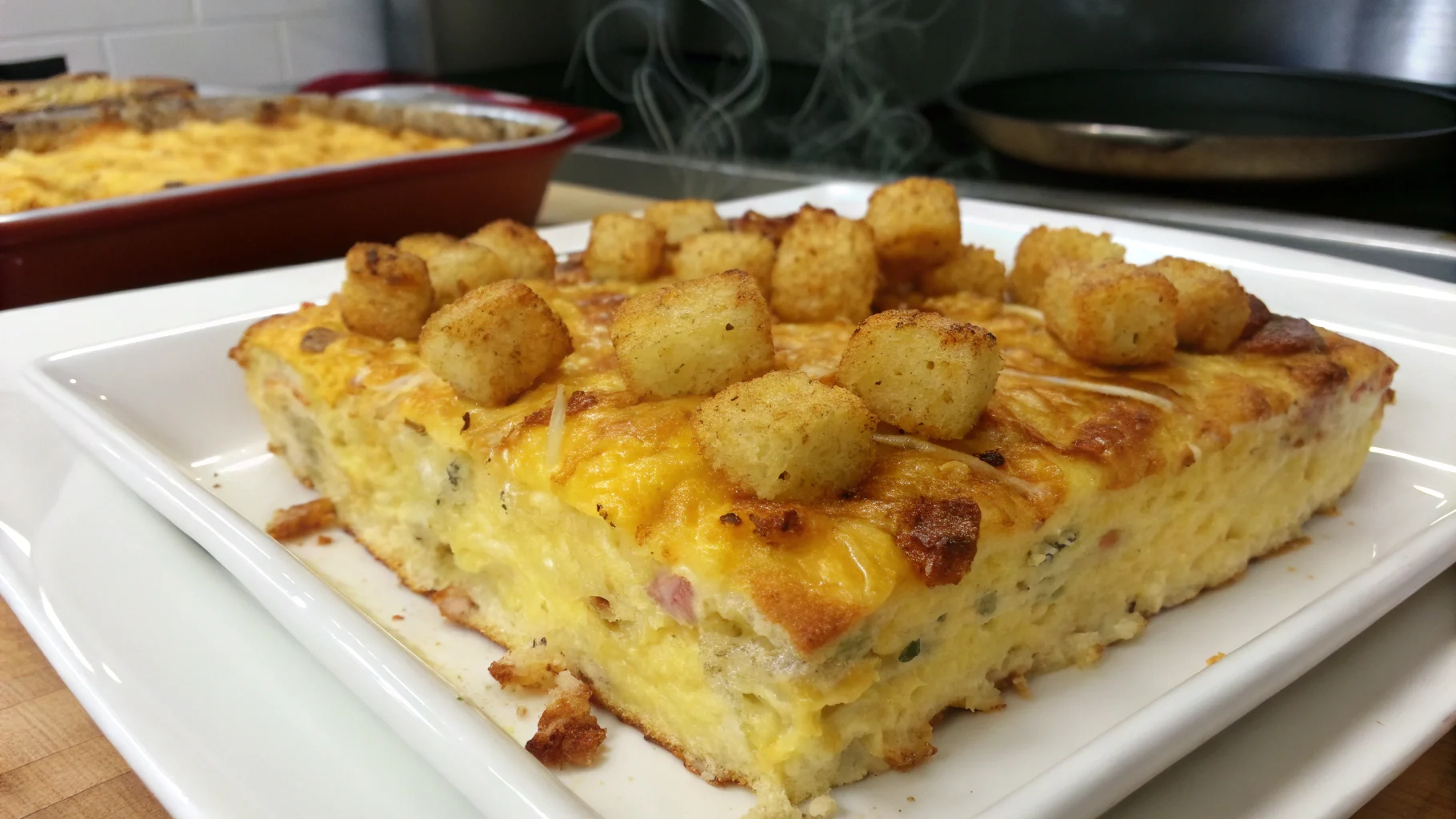 - Bake: Bake uncovered for 40–45 minutes, until eggs are set and tots are deep golden. If needed, broil 1–2 minutes to crisp the tots further. Watch closely—no charcoal vibes.