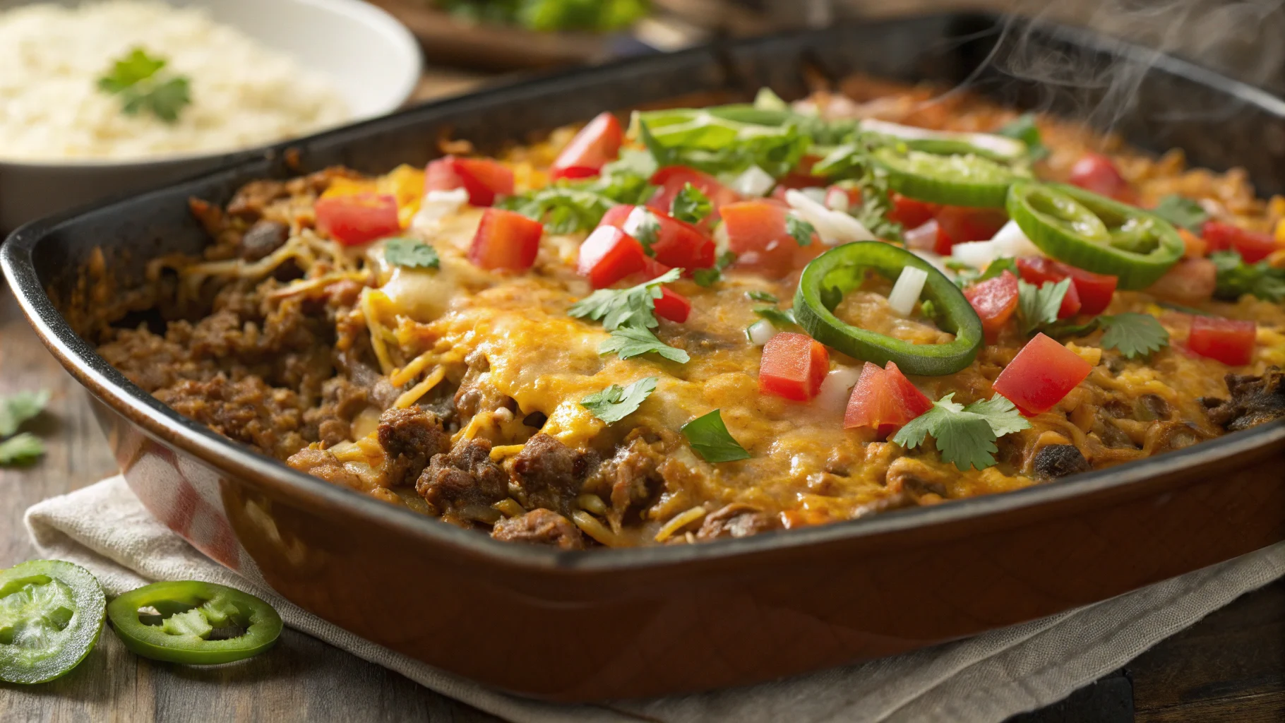 This is comfort food with swagger: smoky spices, juicy beef, tender rice, and a lava layer of cheese. It’s engineered for real life—pantry staples, easy swaps, and minimal cleanup.