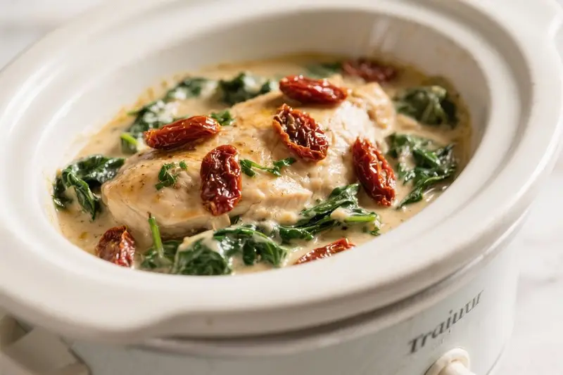 Crockpot Creamy Tuscan Chicken With Spinach & Sun-Dried Tomatoes – Comforting, Simple, and Flavor-Packed