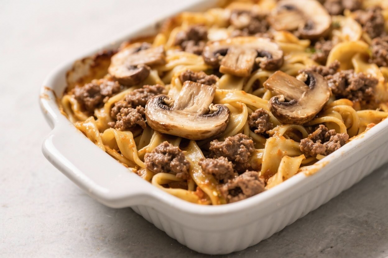 Ground Beef and Mushroom Noodle Bake - Cozy, Creamy, and Weeknight-Friendly