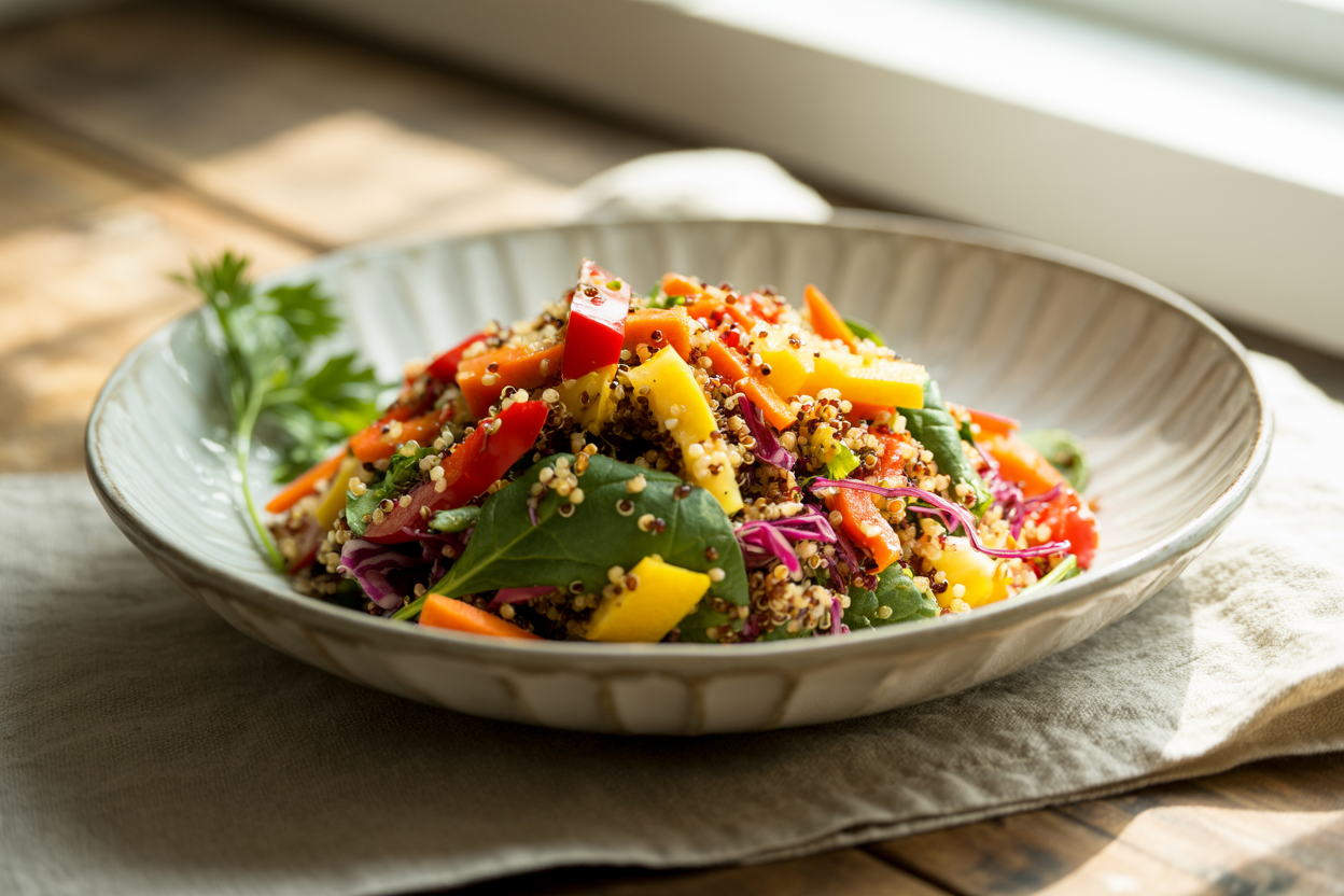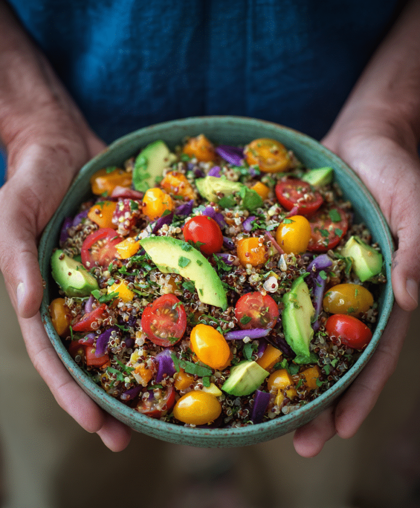 This Rainbow Veggie Quinoa Salad is the hero your lunchbox deserves. It’s crunchy, colorful, and packed with enough nutrients to justify that extra slice of pizza later.