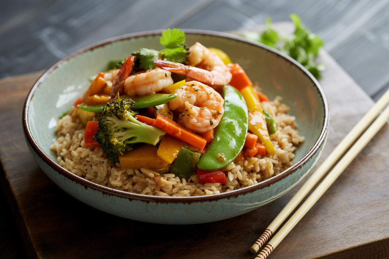 You want a meal that’s healthy, fast, and doesn’t taste like cardboard. Shrimp & Veggie Stir Fry with Brown Rice checks all the boxes.