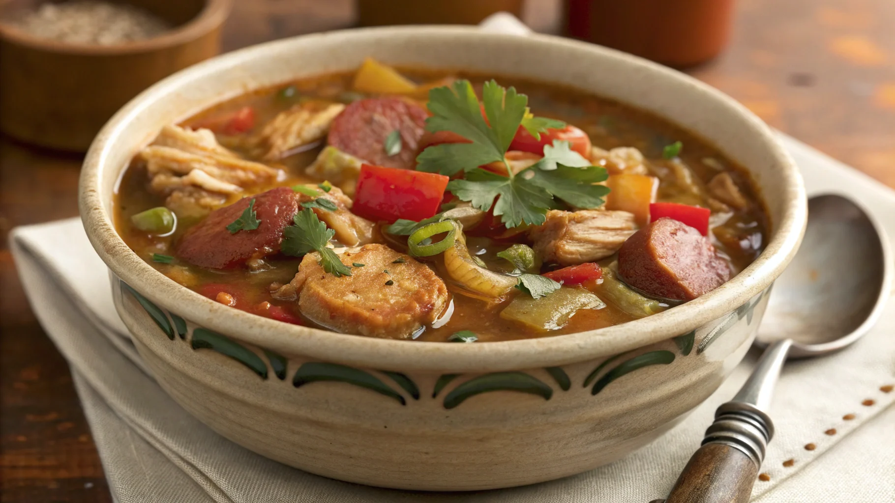 A slow-cooked, dark roux—think chocolate brown—brings nutty depth and unmistakable Creole backbone. Then there’s the smoky trifecta: seared andouille, char-kissed aromatics, and a hint of smoked paprika to pull it all together.