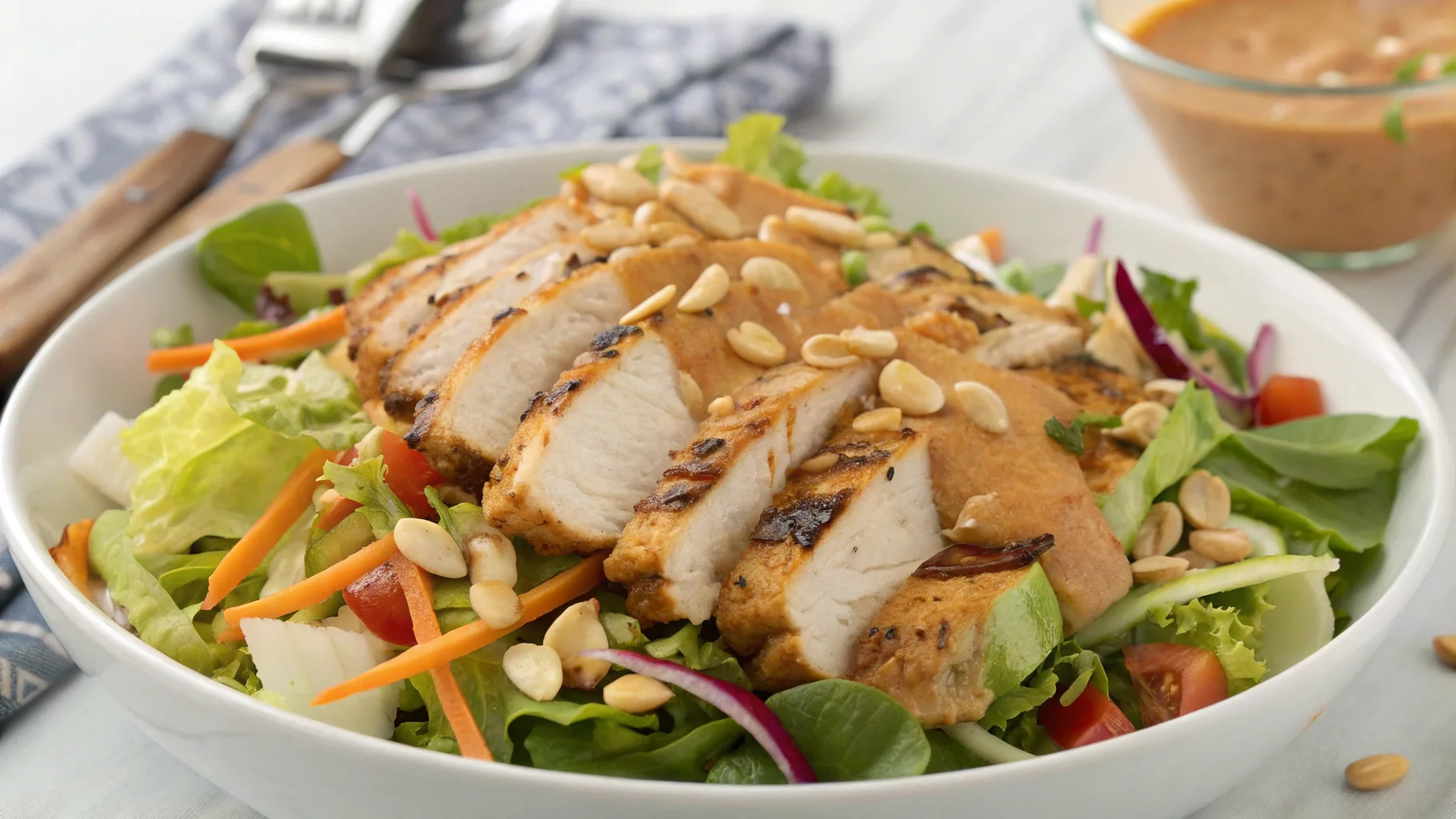 Start with a bowl that actually fights back—in the best way. Juicy chicken, crisp veggies, and a creamy peanut dressing that could make cardboard taste gourmet. This is the kind of salad that ruins boring desk lunches forever.