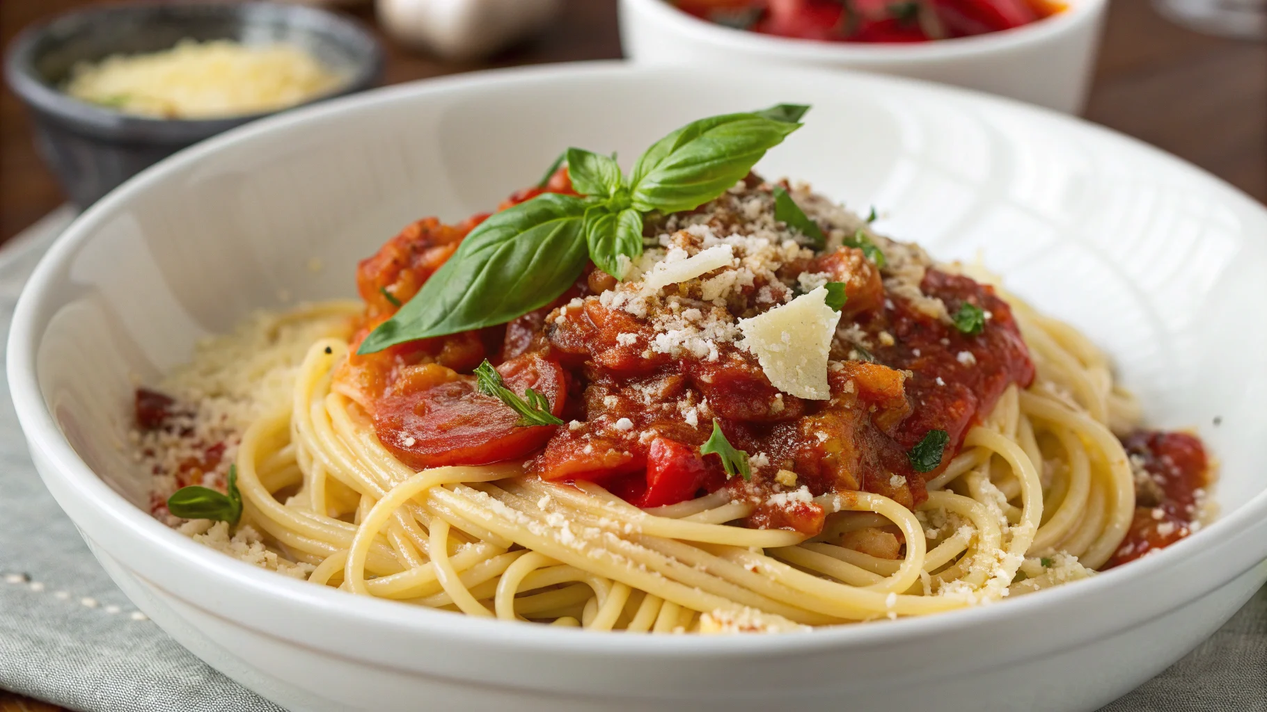 - Marry the sauce and pasta: Add the drained spaghetti to the simmering sauce. Toss over medium heat for 1–2 minutes, splashing in reserved pasta water as needed to create a silky coating. The sauce should cling, not puddle.