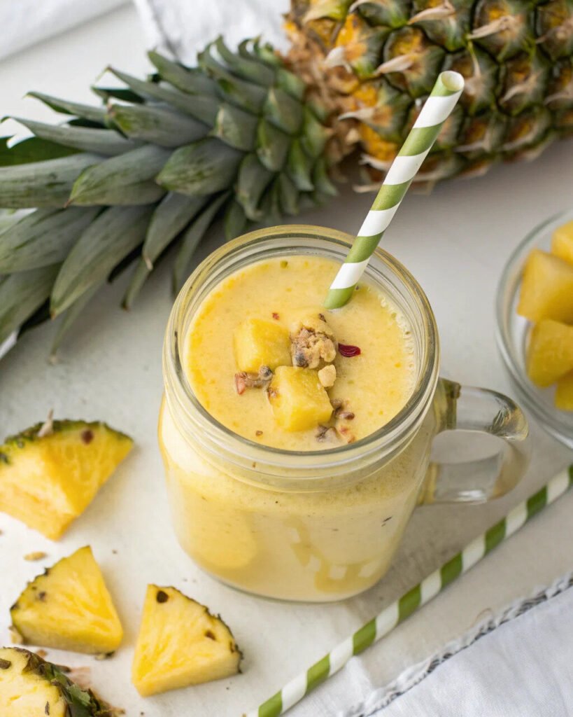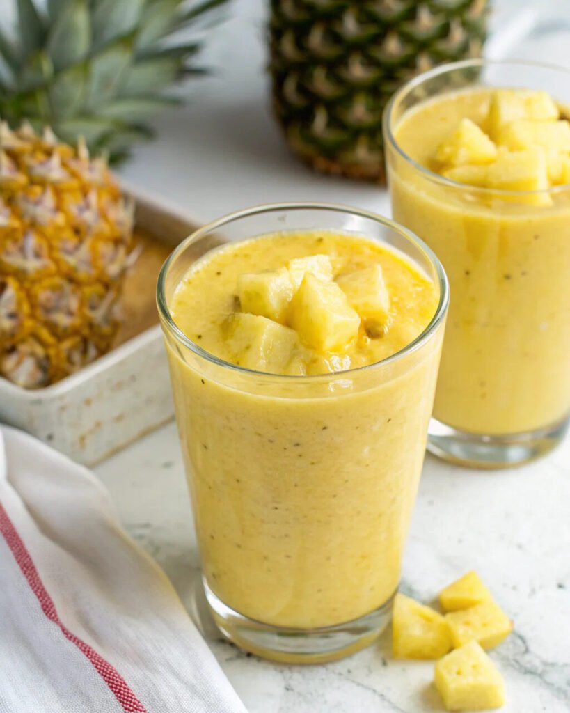 This smoothie is best fresh when the pineapple is bright and the texture is creamy.