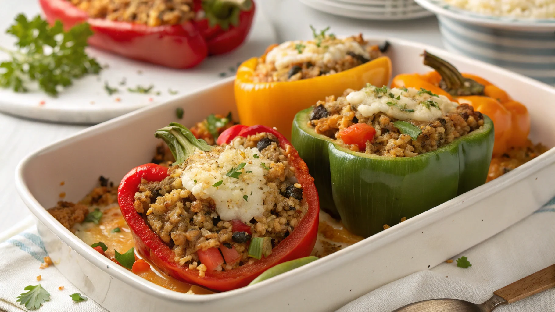 This casserole is the “set it and forget it” version of stuffed peppers—the lazier, tastier cousin. It balances cozy comfort with real nutrition, and it’s flexible enough to meet you where your pantry’s at.